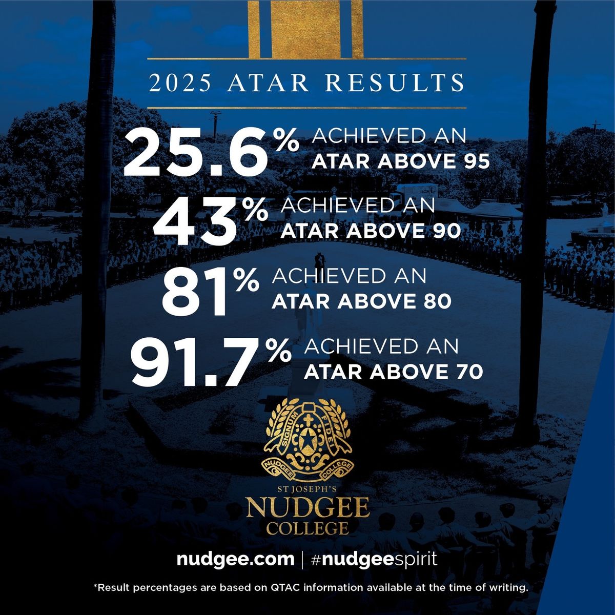 I am delighted to update our community with the Queensland Certificate of Education (QCE) and Australian Tertiary Admission Rank (ATAR) results* of our 2025 Seniors released today.