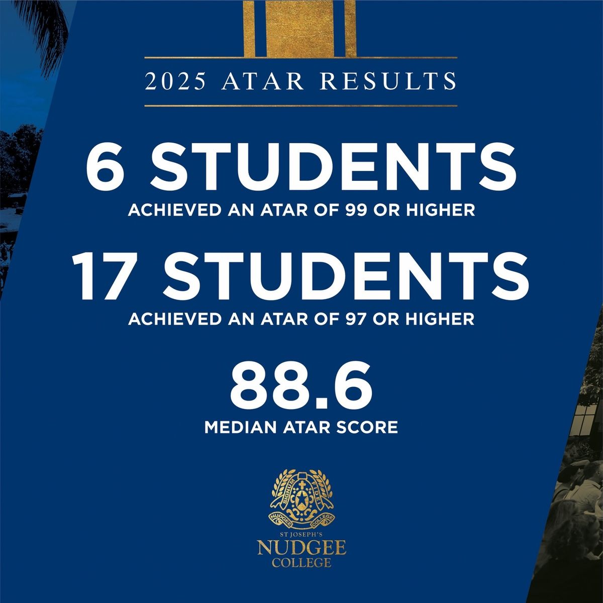 This cohort has continued to build on our strong academic performance, achieving the highest results since ATAR calculations began in 2020. The 2025 cohort finished with a median score of 88.6 and a mean of 86.8.